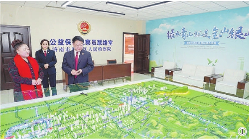①陈雪萍(左一)到济南市历下区检察院调研公益诉讼检察工作