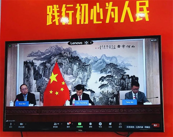 “我叫何健忠,是一名来自中国邮政基层一线、连任三届的全国人大代表。很高兴参加这次国际研讨活动,今天我在江苏泰州泰兴市江平路邮政支局营业厅全国人大代表活动室和大家交流……”