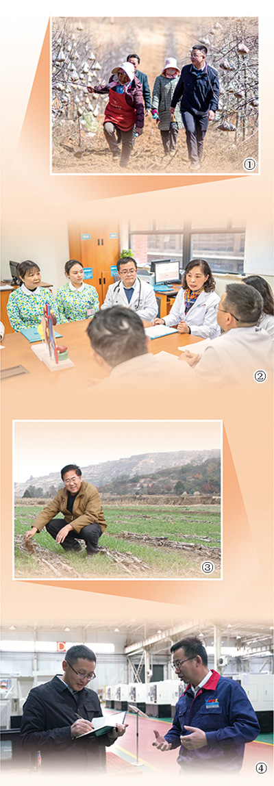 图④:十四届全国政协委员王小龙(左)在工厂调研装备制造相关情况。陈治学 摄
