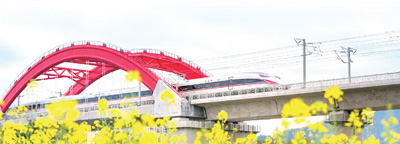 “复兴号”高铁列车在赣深高铁龙南特大桥疾驰而过。朱海鹏 摄