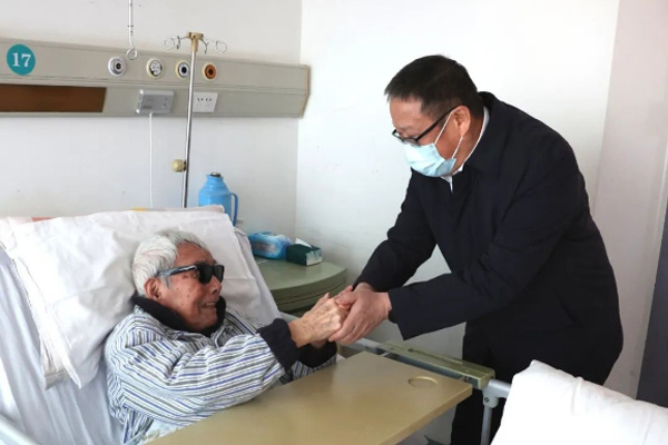 1月26日上午,郑建邦前往医院探望91岁的离休老同志林洪,代表民革中央向老人致以新春问候,送上慰问信、慰问金和节日礼物。“民革中央一直挂念着您!您好好保重,好好养病,早日康复!”慰问中,郑建邦与老人拉家常、问寒暖,关切询问老人身体状况和生活情况,叮嘱老人养好身体,嘱咐机关工作人员关心照顾好老人生活。“谢谢!谢谢!别的话我也说不出了……”林洪老人连连表示感谢,激动之情难以言表。