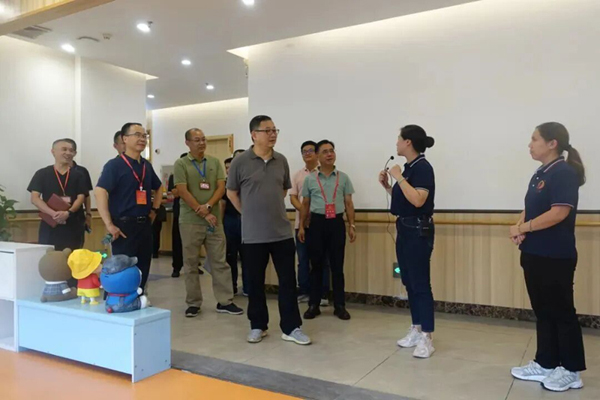 2025年7月16日,广东省、市、区三级人大代表实地调研蓬江区幸福寿星安老之家运营情况。