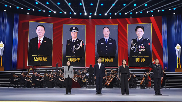 4位“致敬英雄”人物是:边晓斌,生前系江苏省仪征市人民法院党组副书记、常务副院长;蒋仲超,生前系湖北省武汉市公安局江夏区分局交通管理大队二中队二级警长;杨春华,生前系宁夏回族自治区银川市公安局监所管理支队三级高级警长;师帅,生前系黑龙江省强制隔离戒毒所四级高级警长。