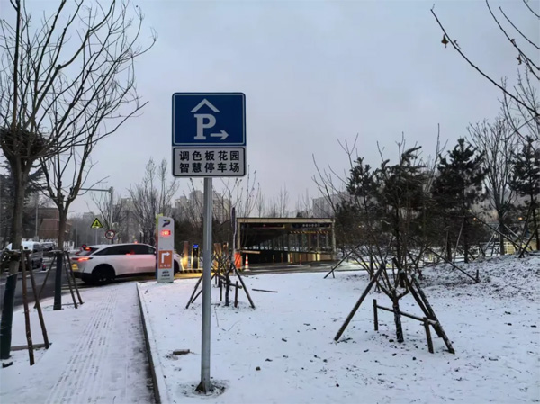 石景山区调色板花园智慧停车场入口。摄影/张樾
