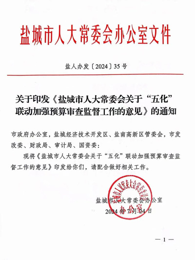 盐城人大专门出台《关于“五化”联动加强预算审查监督工作的意见》,为“五化”联动监督“明方向、定坐标”。《意见》明确了“五化”联动监督的指导思想、基本原则、主要内容、保障措施等,既有监督方式的创新,又有监督内容的拓展,既有夯实监督基础的举措,又有提升监督质效的探索——将重点支出与重大投资项目、预算绩效管理情况纳入人代会预算专题审议范围,健全预算监督基层联系点意见征集、采纳、反馈机制,加强计划审查监督、国资管理监督与预决算审查监督有机衔接,完善预算、债务监督评价指标体系……“五化”联动监督内涵进一步丰富和拓展。