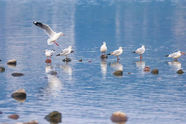 近年来,来自遥远北方的红嘴鸥总会准时南迁到泸州的长江边越冬。人们站在古朴的城楼上晒着太阳,看着眼前成群的鸟儿飞翔;脚下的江水清澈见底,不时还有鱼儿跃出水面,让泸州人“穿越”到古籍中记载的“鸢飞鱼跃”的生态胜景。