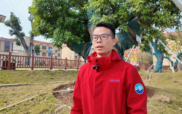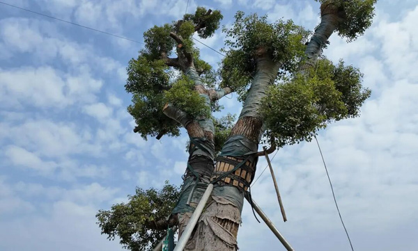 古树搬迁,绝非简单的“挪窝”,而是一次生命接力。平陆运河建设管理团队根据古树的品种、特征、长势等不同情况,进行长达9个月的前期准备工作。工作人员通过对树干健康安全性检测,确定古树的土球大小、树冠保留大小、吊装方式等,并做好方位标记,在定植时仍保持原方位栽植。在断根缩坨施工过程中,控制好土球大小,对古树根系进行修剪断根处理,并涂抹生长素促发新根。同时,对古树进行科学修剪整形、合理挖掘土球、妥善进行包装,以减少对古树的干扰和伤害。