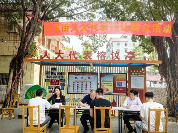 在广州番禺区大龙街旧水坑森林公园,有一棵枝繁叶茂的大榕树,它是村民夏日乘凉、冬日闲谈的好去处。它还有一个特别的名字——“人大代表榕议亭”。人大代表把接待桌椅搬到榕树下,以户外议事的方式问计于民,把联系群众、服务群众放在最接近群众的地方。