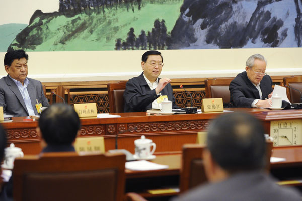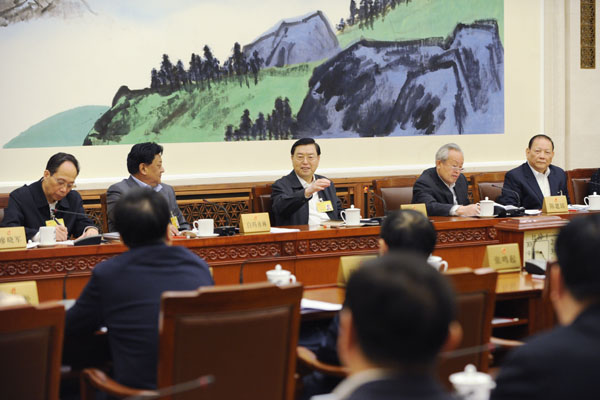 中国人大网讯 2月23日,十二届全国人大常委会第二十六次会议分组审议了拟提请十二届全国人大五次会议审议的全国人大常委会工作报告稿。张德江委员长参加审议。