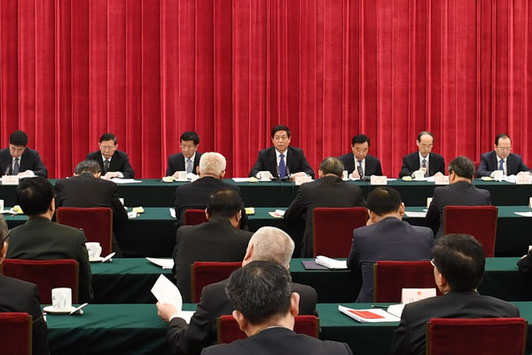3月27日,深入学习宣传和贯彻实施宪法座谈会在北京召开。中共中央政治局常委、全国人大常委会委员长栗战书出席并讲话。中国人大网 李杰 摄