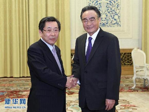 1月16日,全国人大常委会委员长吴邦国在北京人民大会堂会见日本众议院运营委员长小平忠正。 新华社记者 庞兴雷 摄