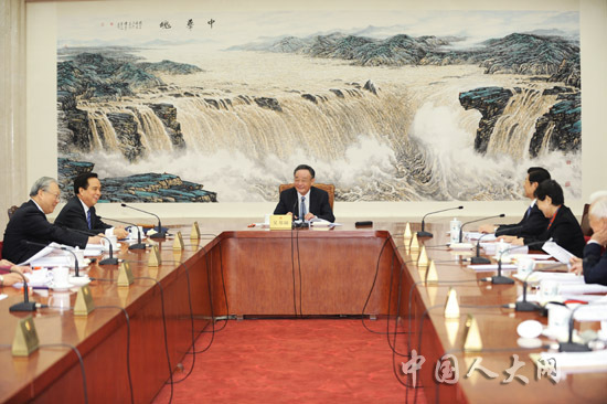 2月18日,十一届全国人大常委会第九十六次委员长会议在北京人民大会堂举行。全国人大常委会委员长吴邦国主持会议。 中国人大网 李杰 摄