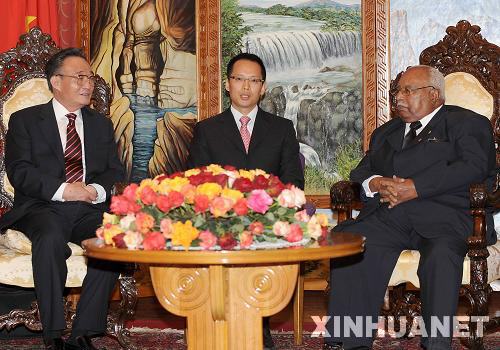11月10日,正在埃塞俄比亚进行正式友好访问的中国全国人大常委会委员长吴邦国在亚的斯亚贝巴会见埃塞俄比亚总统吉尔马。新华社记者 高洁 摄