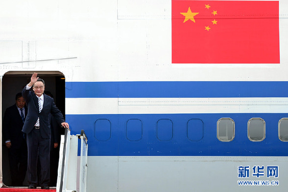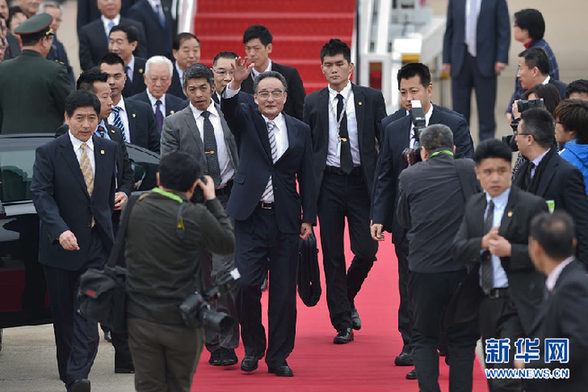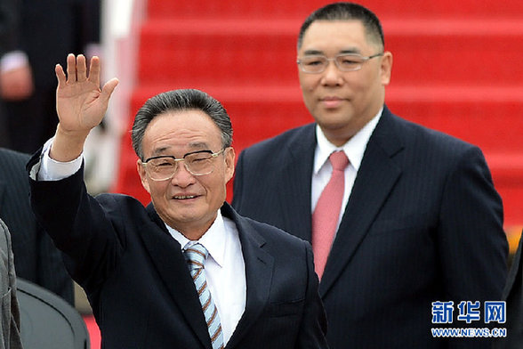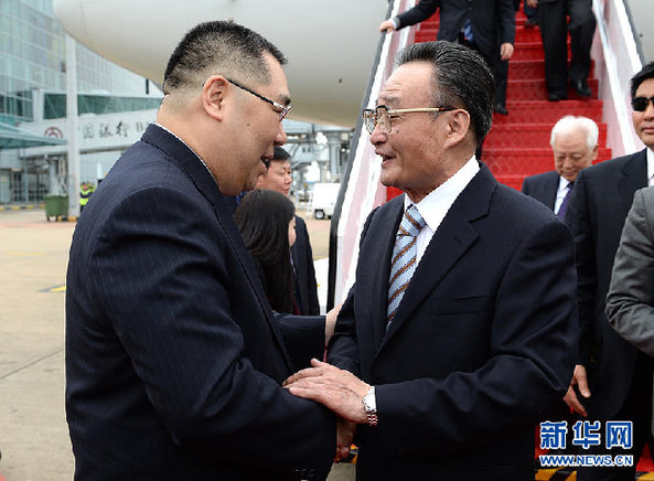 2月20日,中国全国人大常委会委员长吴邦国抵达澳门,他此行将出席纪念澳门基本法颁布20周年等活动。 新华社记者 张金加摄