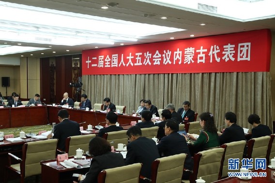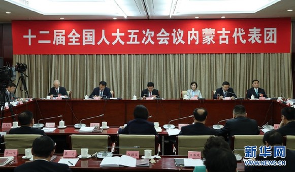 3月10日,十二届全国人大五次会议内蒙古代表团全体会议向媒体开放。(王超 摄)