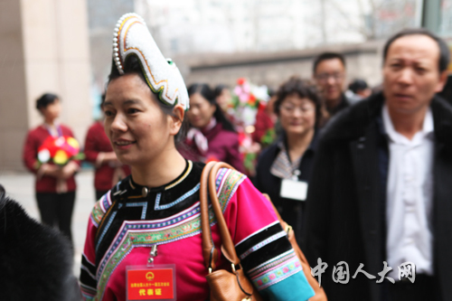 ,来自云南的全国人大代表抵达北京,参加十一届全国人大五次会议。韩毅摄