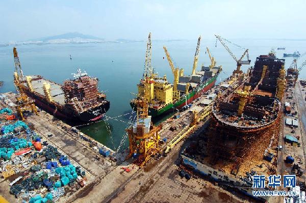 在山东荣成市黄海造船厂,重吊船在紧张舾装(2011年8月22日摄)。 2012,世界局势迷雾重重,美国经济复苏乏力,欧债危机持续发酵。 2012,中国经济增长放缓,结构转型面临考验,深层改革箭在弦上。 面对充满挑战的内外部环境,即将召开的两会如何给今年中国经济定调、引领国家穿越迷雾稳中求进?国人期待,世界关切。 分析人士认为,“稳增长”“扩内需”“控物价”“兴实业”将成为今年两会代表委员建言献策的关键词。 新华社记者 郭绪雷 摄