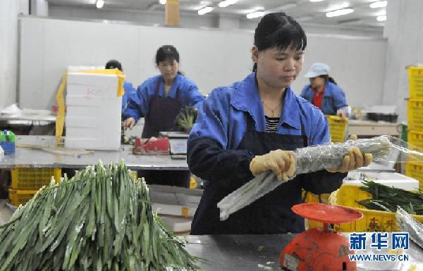 广州市一农场加工区的工人在分装蔬菜送往超市(2月24日摄)。 2012,世界局势迷雾重重,美国经济复苏乏力,欧债危机持续发酵。 2012,中国经济增长放缓,结构转型面临考验,深层改革箭在弦上。 面对充满挑战的内外部环境,即将召开的两会如何给今年中国经济定调、引领国家穿越迷雾稳中求进?国人期待,世界关切。 分析人士认为,“稳增长”“扩内需”“控物价”“兴实业”将成为今年两会代表委员建言献策的关键词。新华社发记者 卢汉欣 摄