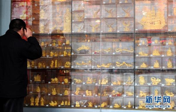 3月2日,一名行人被北京菜百公司橱窗里的黄金饰品吸引,驻足观看。 2012,世界局势迷雾重重,美国经济复苏乏力,欧债危机持续发酵。 2012,中国经济增长放缓,结构转型面临考验,深层改革箭在弦上。 面对充满挑战的内外部环境,即将召开的两会如何给今年中国经济定调、引领国家穿越迷雾稳中求进?国人期待,世界关切。 分析人士认为,“稳增长”“扩内需”“控物价”“兴实业”将成为今年两会代表委员建言献策的关键词。新华社记者 罗晓光 摄