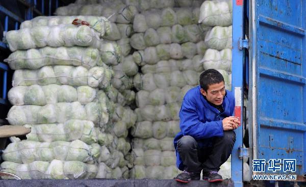 在合肥市周谷堆批发市场,一名大白菜销售商在等待顾客(2011年11月8日摄)。 2012,世界局势迷雾重重,美国经济复苏乏力,欧债危机持续发酵。 2012,中国经济增长放缓,结构转型面临考验,深层改革箭在弦上。 面对充满挑战的内外部环境,即将召开的两会如何给今年中国经济定调、引领国家穿越迷雾稳中求进?国人期待,世界关切。 分析人士认为,“稳增长”“扩内需”“控物价”“兴实业”将成为今年两会代表委员建言献策的关键词。新华社记者 刘军喜 摄