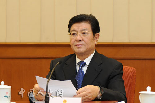 全国人大常委会副委员长王兆国主持十一届全国人大常委会第二十四次会议第二次全体会议。中国人大网 李杰 摄