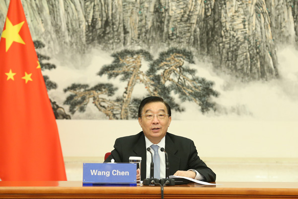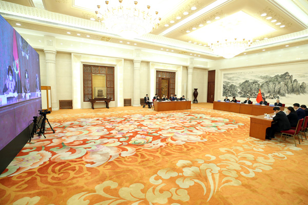 12月18日,中共中央政治局委员、全国人大常委会副委员长王晨在京通过视频方式会见安哥拉国民议会第一副议长迪亚斯。毕楠 摄