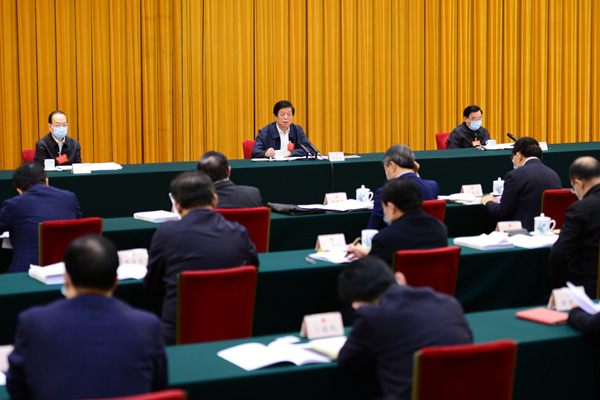 深入学习贯彻习近平总书记关于坚持和完善人民代表大会制度的重要思想,坚持党的领导、人民当家作主、依法治国有机统一交流会21日在京举行。中共中央政治局常委、全国人大常委会委员长栗战书出席会议并讲话。马增科/摄