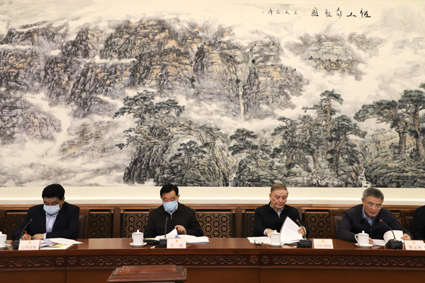 3月31日,全国人大常委会中医药法执法检查组第一次全体会议在北京召开,全国人大常委会副委员长艾力更·依明巴海、白玛赤林、蔡达峰出席会议。 张钰钗 摄