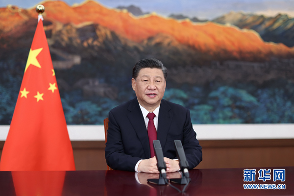 习近平强调,2021年是中国共产党成立100周年。中国共产党为中国人民谋幸福,为中华民族谋复兴,为世界谋大同。中国将继续做世界和平的建设者、全球发展的贡献者、国际秩序的维护者。中国将始终高举和平、发展、合作、共赢旗帜,积极推动构建新型国际关系。中国无论发展到什么程度,永远不称霸、不扩张、不谋求势力范围,不搞军备竞赛。中国将积极参与贸易和投资领域多边合作,推进海南自由贸易港建设,推动建设更高水平开放型经济新体制。欢迎各方分享中国市场的巨大机遇。