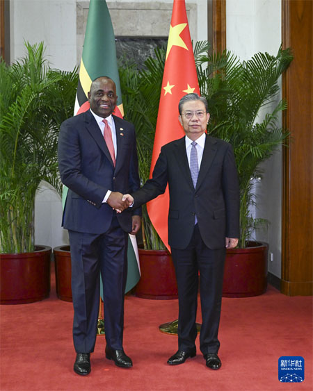 3月25日,全国人大常委会委员长赵乐际在北京会见多米尼克总理斯凯里特。新华社记者 张领 摄