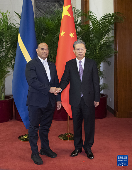 会见阿迪昂时,赵乐际表示,昨天,习近平主席同总统先生举行历史性会晤,共同擘画了两国关系发展的新蓝图。中方愿同瑙方一道,落实好两国元首达成的重要共识,巩固政治互信,拓展务实合作,加强人文交流,更好造福两国人民。中国正以中国式现代化全面推进强国建设、民族复兴伟业,将给包括瑙鲁在内的世界各国带来新的发展机遇,欢迎瑙鲁搭乘中国发展快车。中国全国人大愿同瑙鲁议会加强各层级交流,制定完善有利于双边合作的法律文件,分享改革发展、法治建设等方面经验。