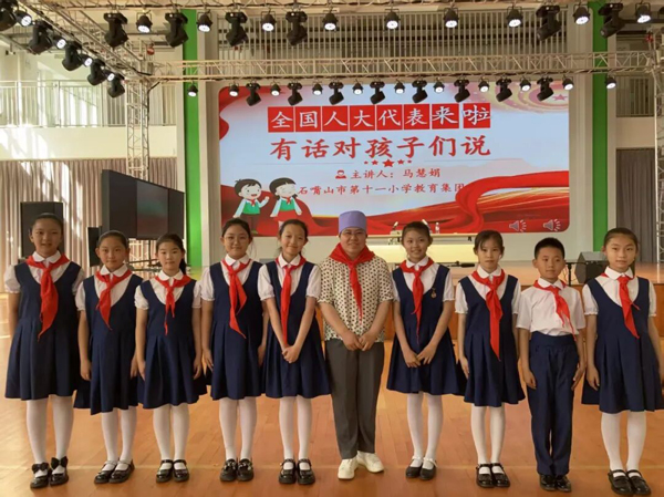 近年来,马慧娟的足迹遍布乡村、社区、学校、企业、单位,每年宣讲超过100场,将党和国家的好政策带到基层。图为马慧娟到石嘴山市第十一小学开展宣讲。(代表供图)