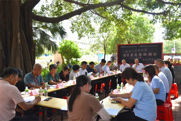 2025年7月9日,广东江海基层立法联系点在大榕树下开展《中华人民共和国村民委员会组织法(修正草案)》意见征集活动。(全国人大常委会法工委基层立法联系点办公室供图)