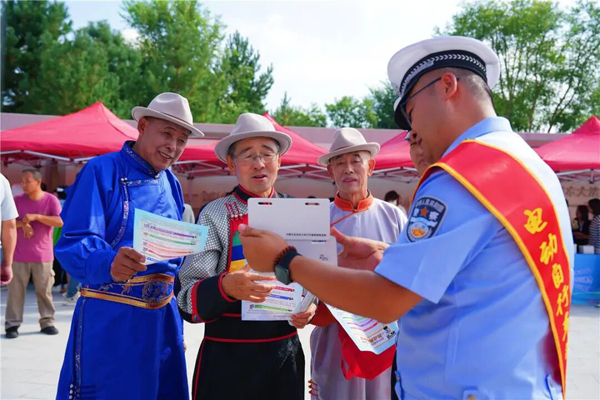 2025年8月18日,内蒙古鄂尔多斯基层立法联系点在鄂尔多斯市全过程人民民主实践基地“法治宣传周”活动现场,公、检、法部门工作人员向群众普法。(全国人大常委会法工委基层立法联系点办公室供图)