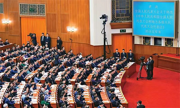 图为2025年3月11日,十四届全国人大三次会议表决通过全国人民代表大会关于修改《中华人民共和国全国人民代表大会和地方各级人民代表大会代表法》的决定草案。 新华社记者 刘大伟/摄