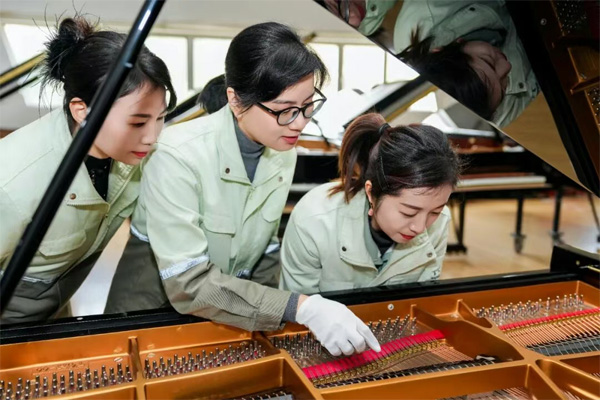 在国际音乐赛事上,听到参赛选手对国产钢琴的肯定,雷春华说,当时心里的那种自豪感和爱国情感澎湃汹涌,让她久久不能忘怀。这不仅增强了她用技艺支持国产钢琴走向世界的使命感,也激励着她用一颗炽热的中国匠心,将国产钢琴推上更多国际赛事舞台。