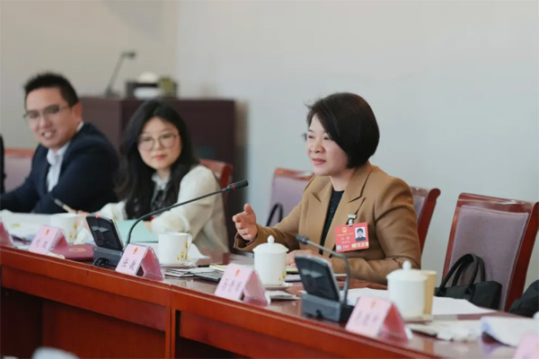 图为任敏代表(右一)在参加全国人代会代表团分组讨论。(代表供图)