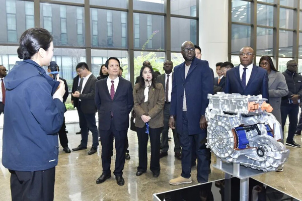图为恩迪亚耶议长率团参访长安汽车全球研发中心。摄影/唐安冰