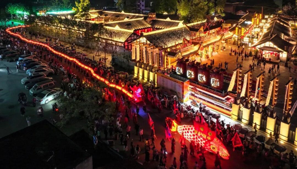 2025年中秋节期间,城厢古城举办“巨型鱼灯+百米板凳龙”大巡游。此前,青白江区人大常委会曾出台决定,以法定形式保护城厢古城。(成都市人大常委会供图)