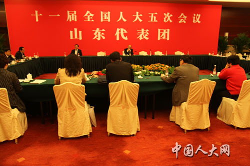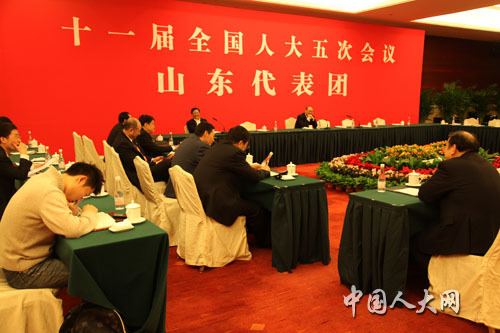 3月13日,山东代表团审议各项决议草案和关于修改刑事诉讼法的决定草案建议表决稿等。张庆水摄