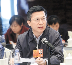 3月9日上午,浙江代表团举行全体会议,审议全国人大常委会工作报告。代表们畅所欲言,气氛热烈。(黄曙林 摄)