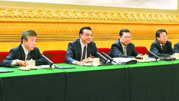 3月9日上午,中共中央政治局常委、国务院副总理李克强与河南团的代表们一起讨论审议政府工作报告和全国人大常委会工作报告。(郭宇 摄)