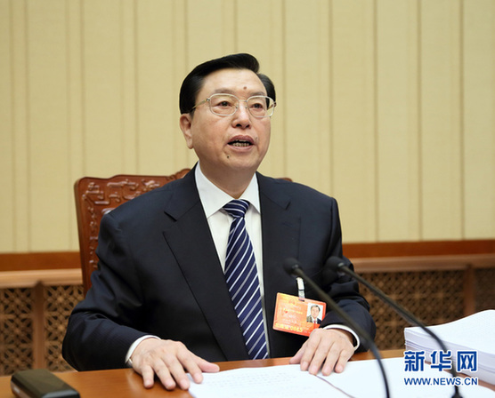 3月12日,十二届全国人大一次会议主席团在北京人民大会堂举行第三次会议。主席团常务主席张德江主持会议。 (新华社记者 兰红光摄)