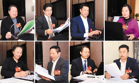 3月4日,浙江省全国人大代表在驻地精心准备议案和建议。 记者黄曙林 摄