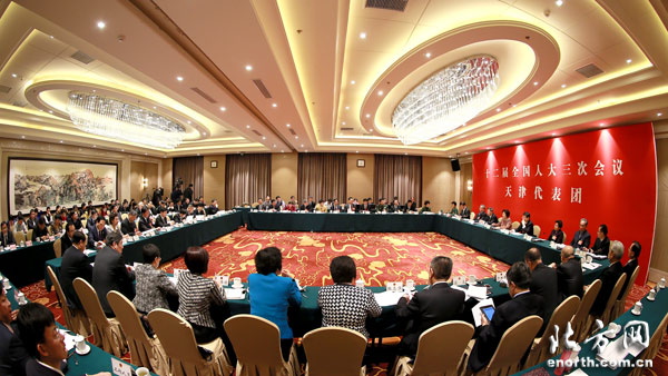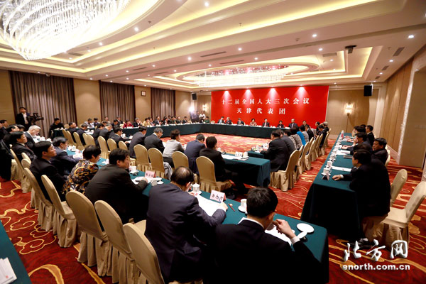 天津北方网讯:5日下午,出席十二届全国人大三次会议的天津代表团举行全体会议,审议李克强总理所作的《政府工作报告》。孙春兰、黄兴国等代表在审议中发言,代表团团长肖怀远参加。国家安全监管总局局长杨栋梁到团听取审议意见。