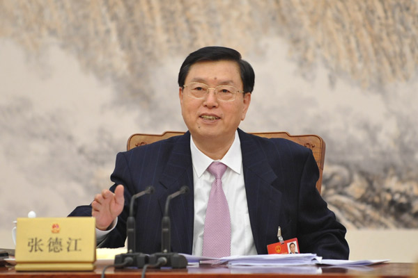 十二届全国人大四次会议主席团常务主席、全国人大常委会委员长张德江主持会议。