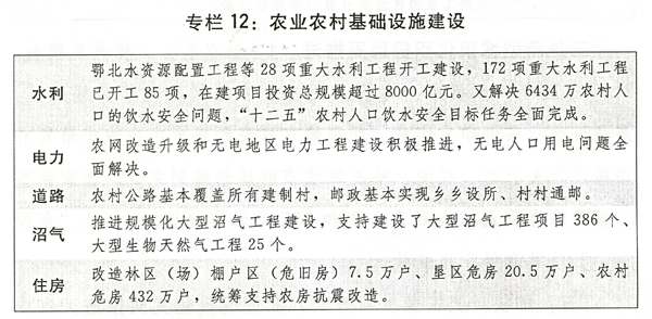 二是农业农村基础设施建设继续强化。重大水利工程建设加快推进。大中型灌区节水改造和新增1000亿斤粮食生产能力规划田间工程加快实施,现代种业基础设施建设得到加强,粮食收储仓容建设力度加大。农村水电路气房等基础设施建设深入推进,城乡基础设施和公共服务设施互联互通、共建共享步伐加快。农业面源污染治理、东北黑土地保护利用、已垦草原治理试点启动,耕地重金属污染治理、地下水超采治理试点积极推进。