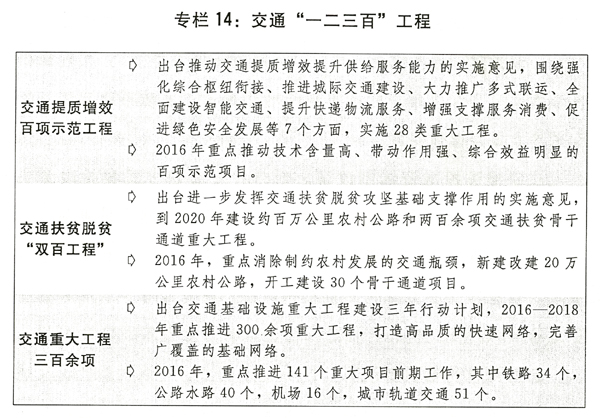 二是着力补短板、调结构、提高投资的有效性。牢牢抓住关键领域和薄弱环节,创新政府性资金使用方式,充分发挥中央预算内投资、专项建设基金“四两拨千斤”的引导带动作用,着力补短板,扩大有效投资。2016年全社会固定资产投资预期增长10.5%左右。第一,进一步优化用好预算内投资。中央预算内投资拟安排5000亿元,重点支持保障性安居工程、粮食水利、中西部铁路、科技创新、节能环保和生态建设、教育卫生文化等社会事业、老少边贫地区建设等。第二,充分发挥专项建设基金带动作用。按季度安排市场化方式筹措的专项建设基金,保持适度规模。积极推动社会资本跟进,发挥投贷结合效应。加大企业债券发行力度,鼓励发行城市地下综合管廊、停车场、战略性新兴产业、养老产业、配电网建设改造、双创孵化、绿色债券等企业债券创新品种。第三,组织编制三年滚动投资计划。切实加强政府投资项目储备,做到储备报批一批、开工建设一批、投产达标一批,形成接续不断、滚动实施的储备机制和良性循环。第四,着力激活社会投资。统筹安排中央预算内投资和专项建设基金,优先支持符合投向的政府和社会资本合作(PPP)项目建设。进一步放宽市场准入,拓宽社会资本投资渠道。加快出台政府投资条例、基础设施和公用事业特许经营条例、企业投资项目核准和备案管理条例。第五,加强关键领域薄弱环节重大工程建设。着力推进脱贫攻坚、棚户区改造、农村电网和城镇配电网改造、重大水利工程、铁路、公路、城市轨道交通、重点流域水污染治理和企业技术改造等“十三五”重点专项和重大项目建设。新开工20项重大水利工程。实施交通“一二三百”、西北风光电基地和军民融合重大战略工程。加强投资管理,加大项目监督稽察力度。