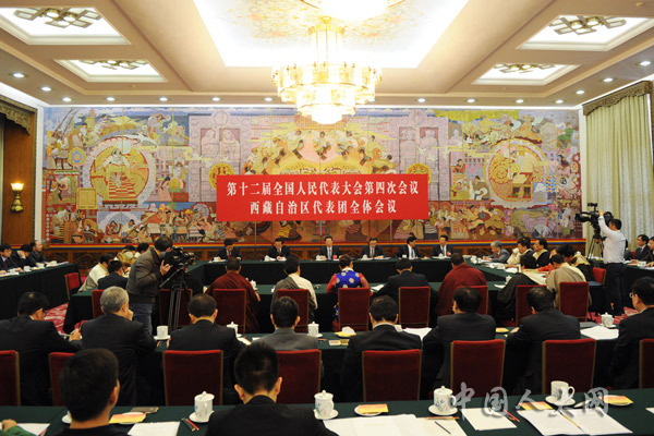 3月10日上午,十二届全国人大四次会议西藏自治代表团举行全体会议。中国人大网 李杰 摄