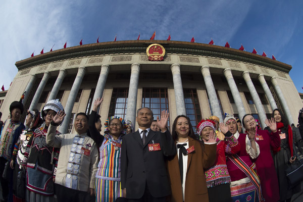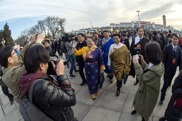 图为来自各地的全国人大代表 王芳 摄